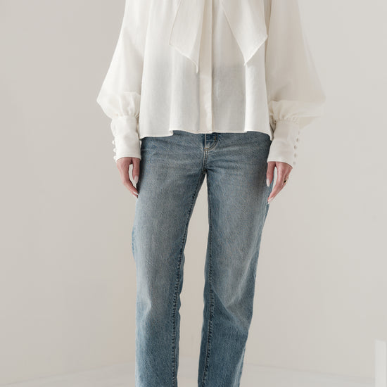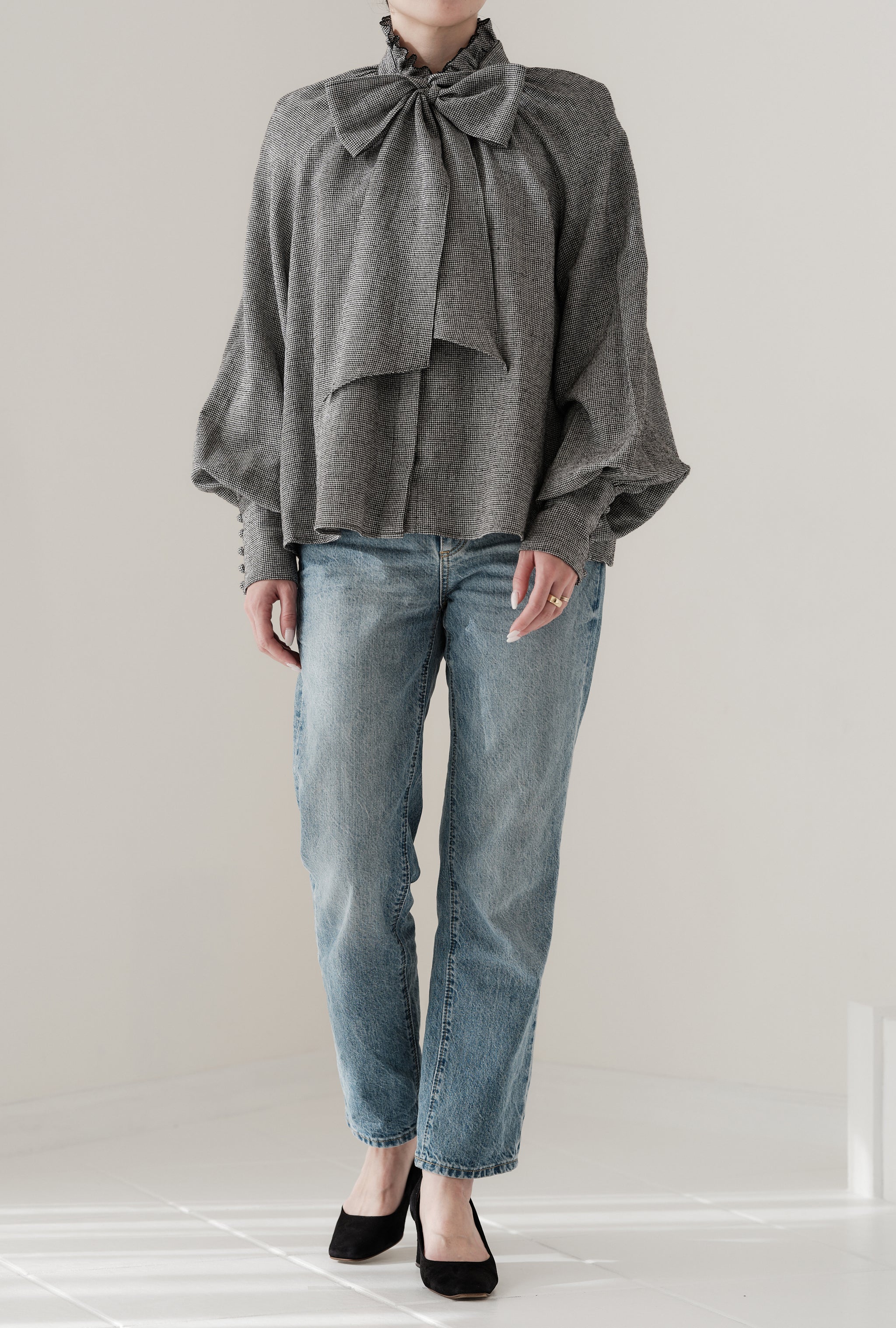 ボウタイは取り外しが可能です。お手持ちのスカーフを巻いても。