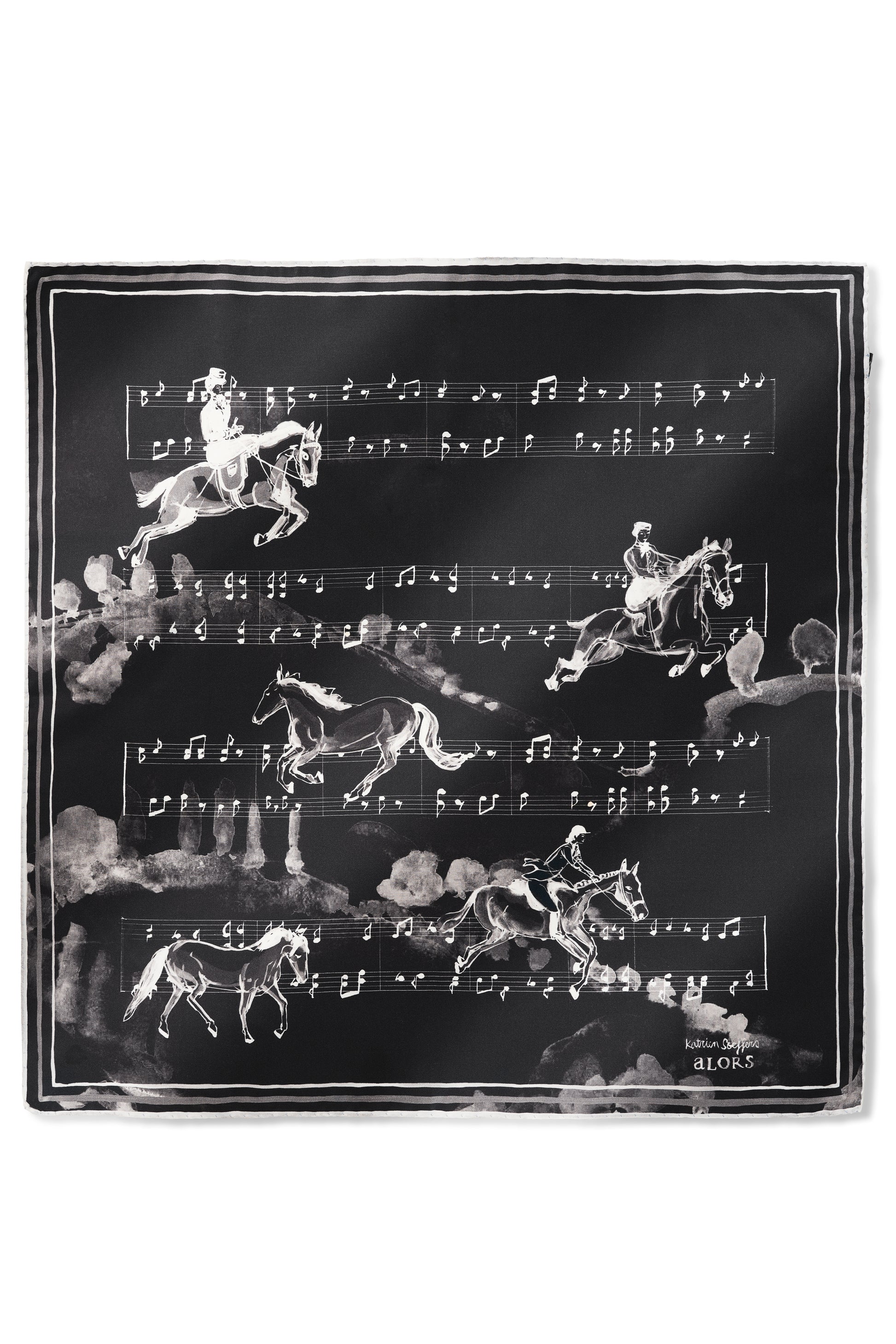 ◼︎コンセプト:馬上の人々を描いたスカーフ。風を切り、物語の旋律を纏うように。