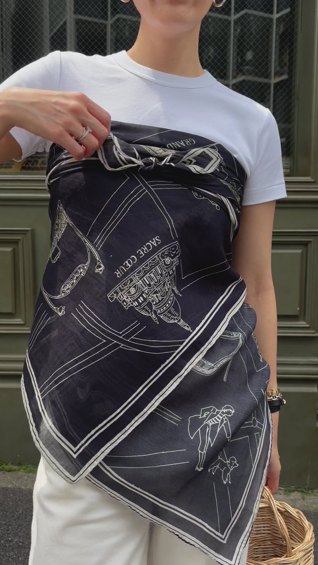 Foulard Ex-libris Paris x aLORS -une collaboration d’exception(ダークネイビーx アイボリー) 140x140cm