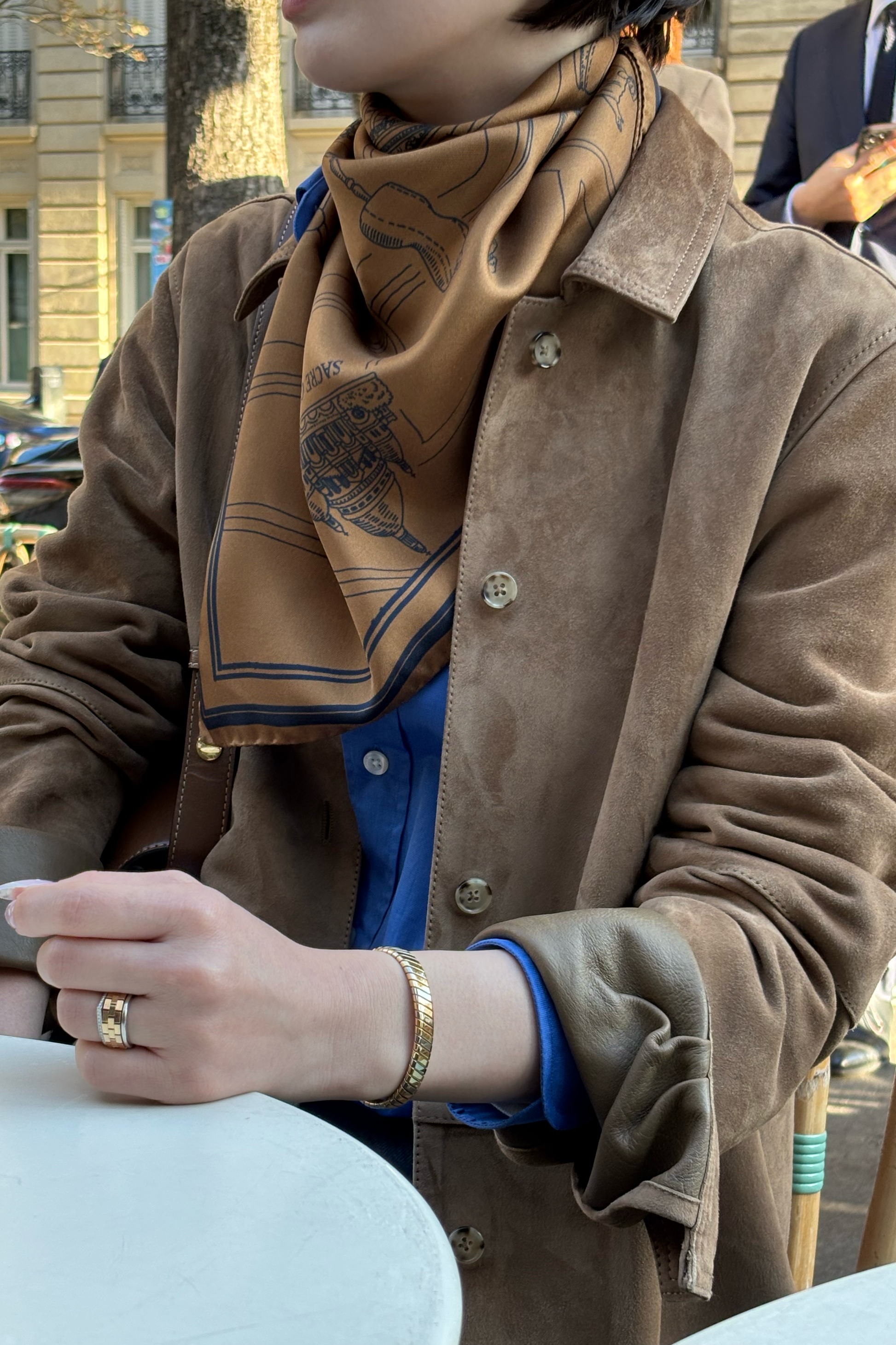 Foulard Ex-libris Paris x aLORS -une collaboration d’exception (キャメルx ネイビー) 90x90cm