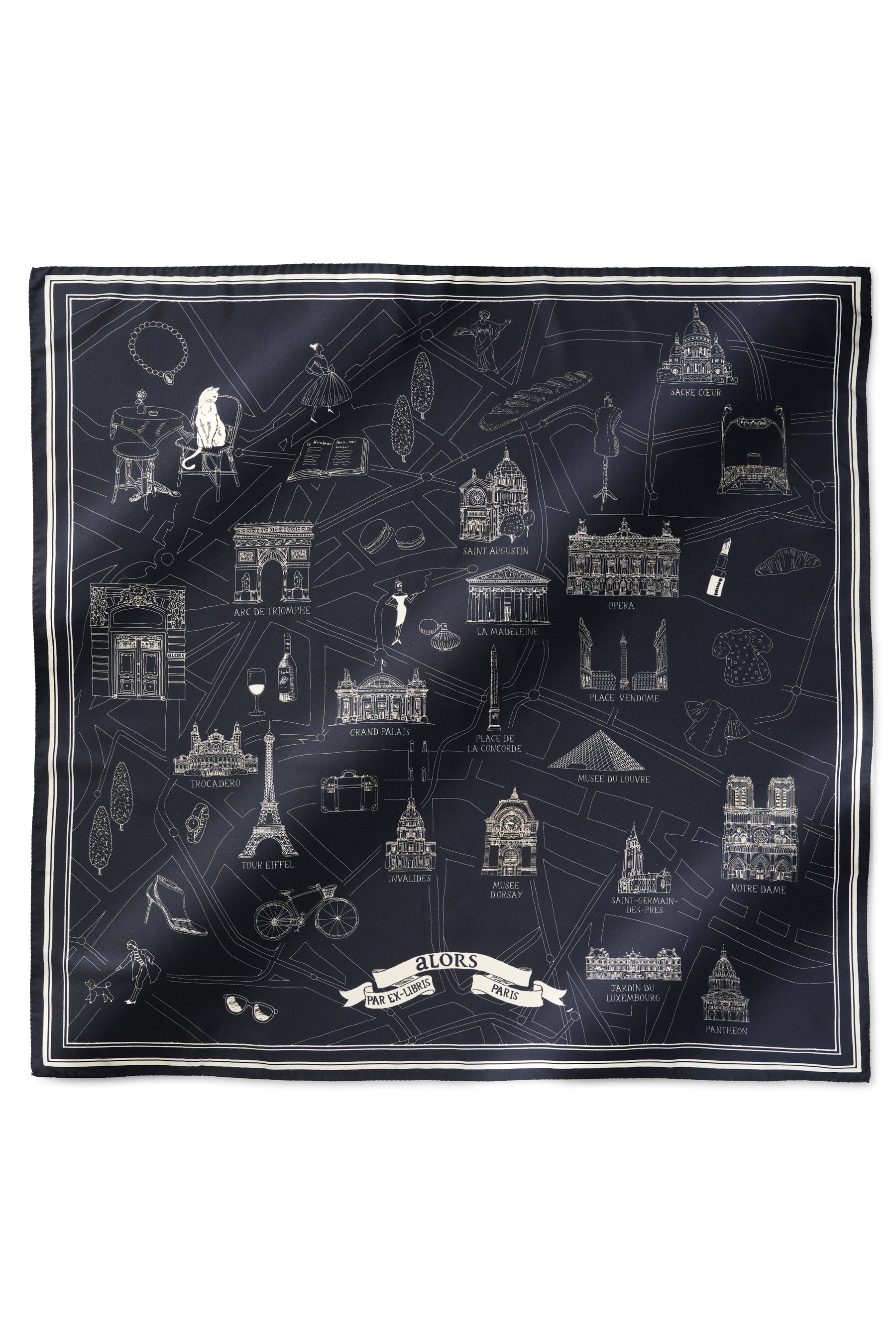 Foulard Ex-libris Paris x aLORS -une collaboration d’exception(ダークネイビーx アイボリー) 90x90cm