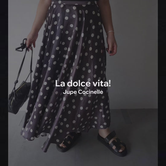 aLORSオリジナルのドット柄生地は、表面はレーヨン(ビスコース)、裏面は麻(リネン)という裏表で表情の違う、イタリアならではの特殊な生地を使用しました。