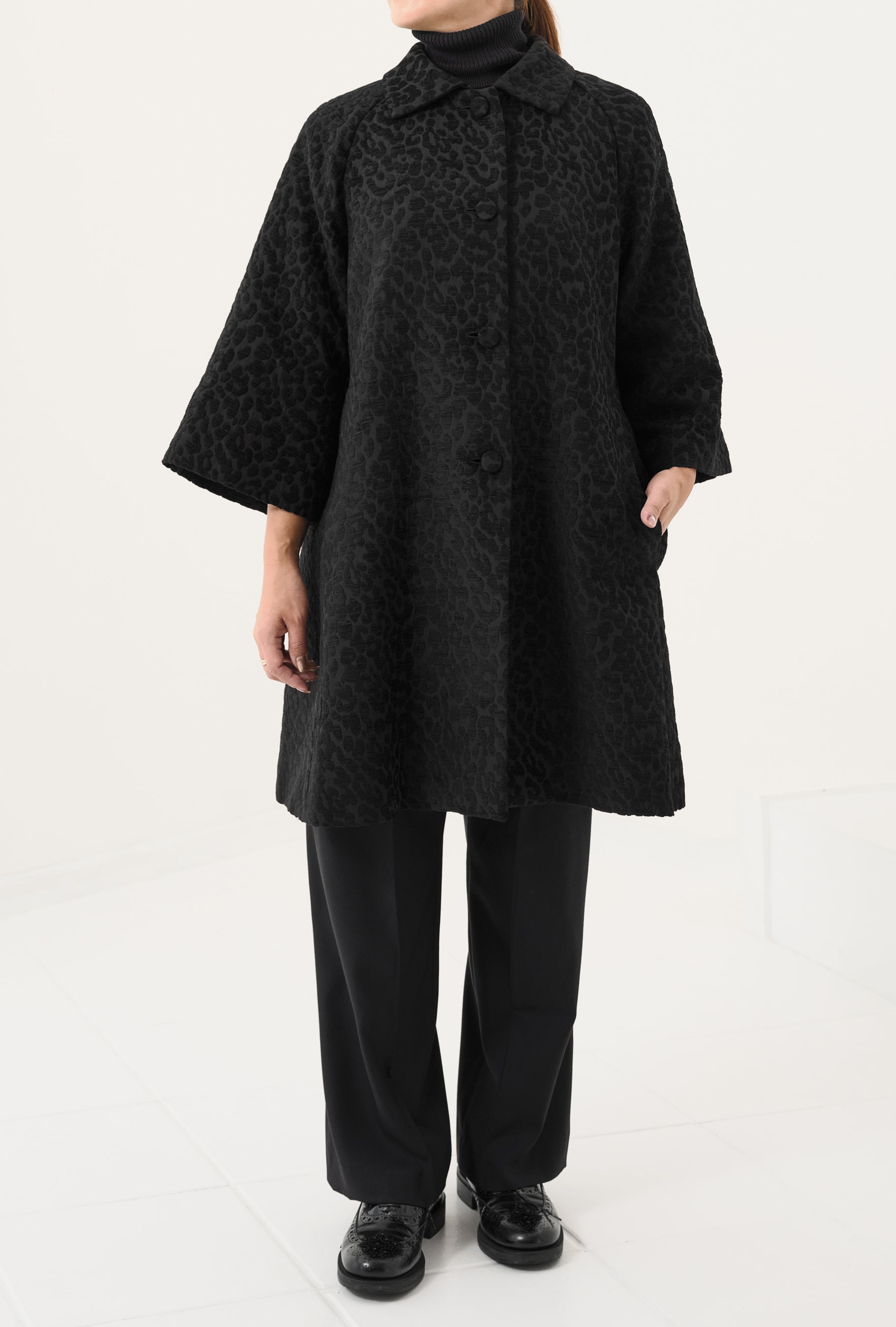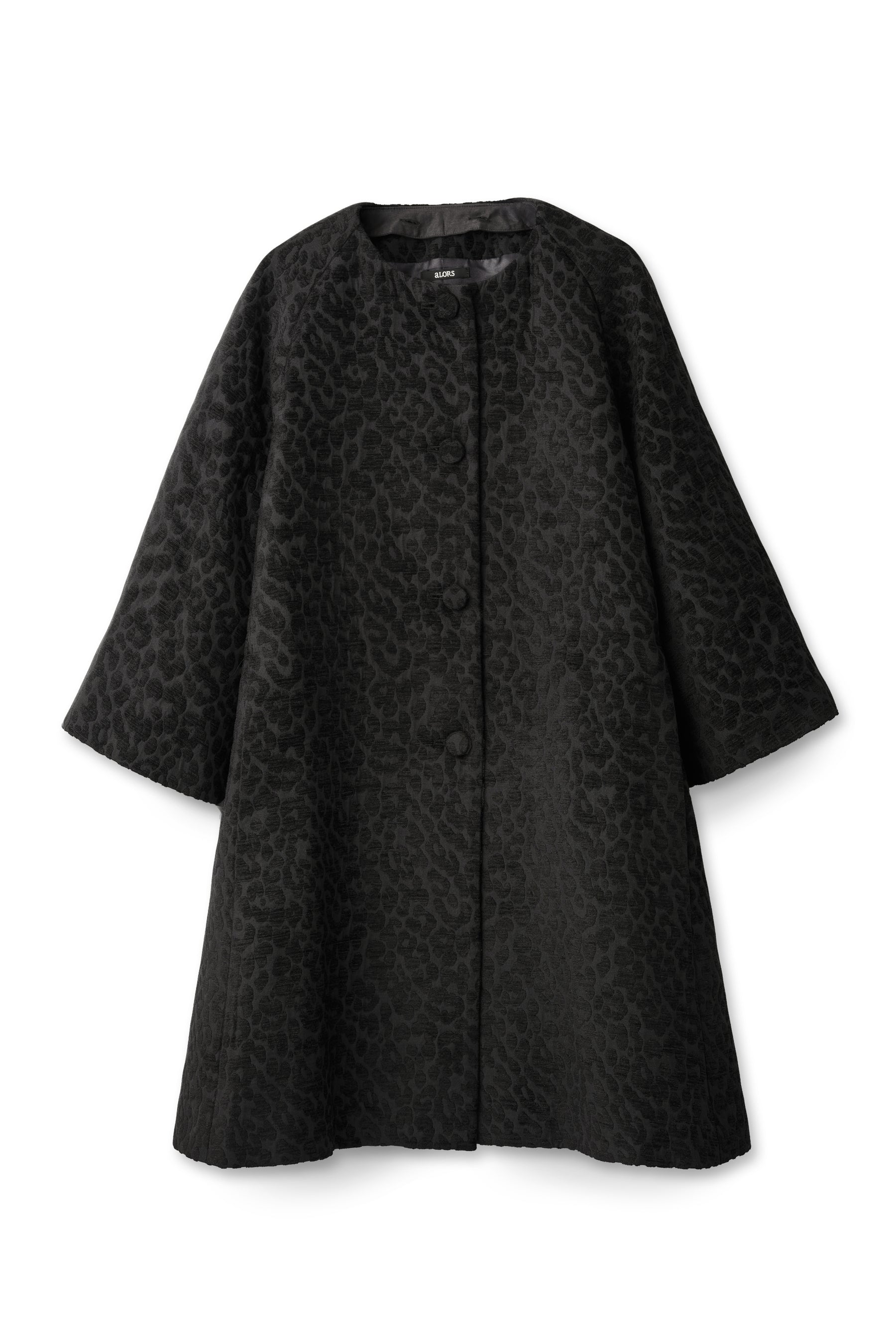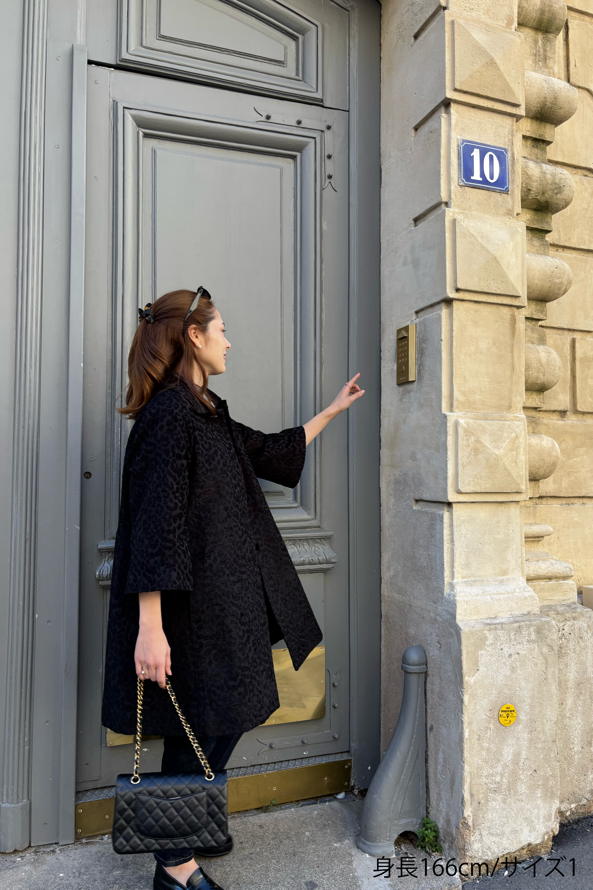 イタリアで開発したブランドオリジナルのレオパード柄ジャガードを用いた【アマーリ】シリーズに、新作のコートが加わりました。